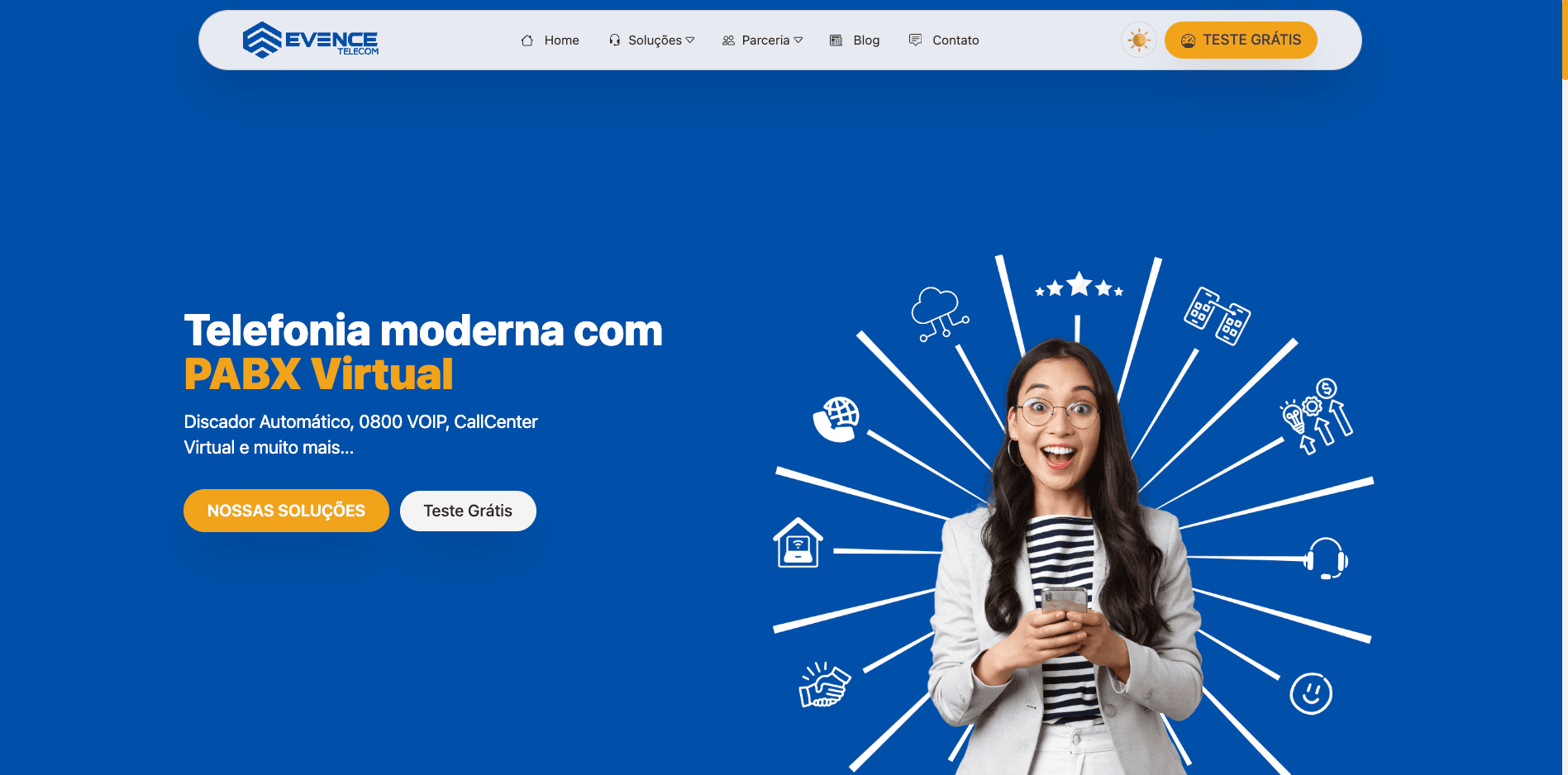 Criei o site da Evence Telecom para oferecer soluções modernas de telefonia corporativa, como PABX Virtual, 0800 VOIP e Discador Automático, com foco em otimizar a comunicação das empresas. A plataforma foi desenvolvida para proporcionar mobilidade, fácil integração com CRM e alta estabilidade, garantindo aos clientes um sistema eficiente, sem quedas e com excelente qualidade de chamadas. O projeto reflete a experiência da Evence no mercado e a sua missão de transformar a forma como as empresas se comunicam.